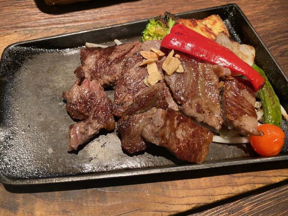 切り落としステーキはとても柔らかくオススメです。休日に行かれる際は、予約必須です。