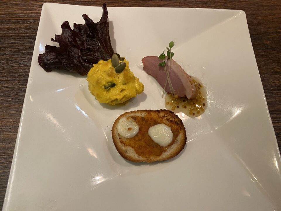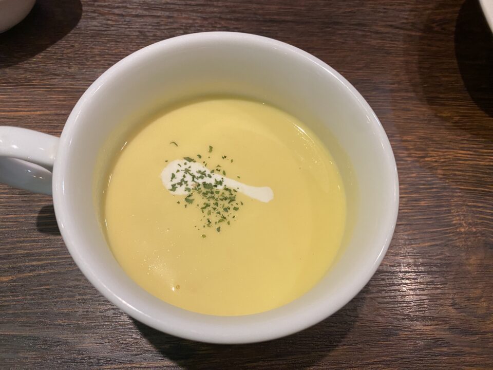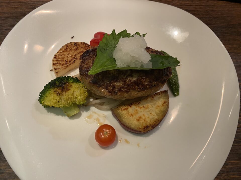 長女は前菜・デザート・ドリンクが付いた農園のランチコース(1970円)、私はグリルランチ(1690円)をオーダー。どちらのランチもメイン料理が15種類から選べますが、長女は+220円で切り落としステーキ、私は、むなかた牛ハンバーグをチョイスしました。